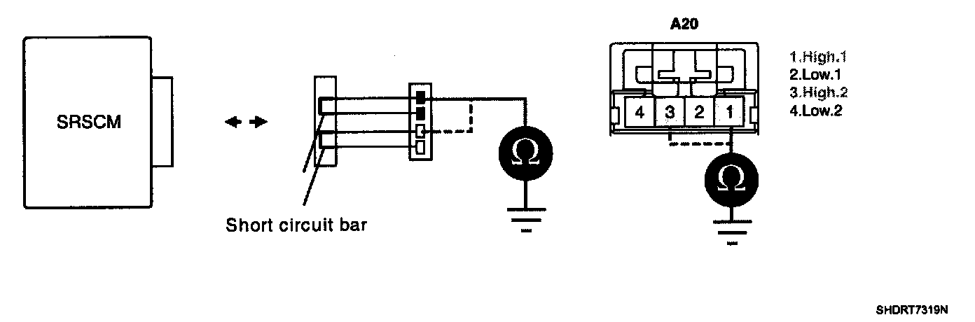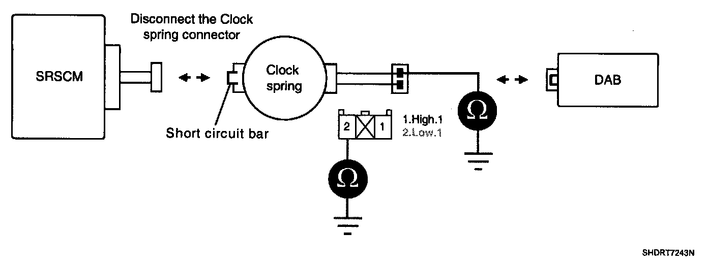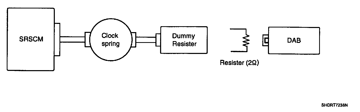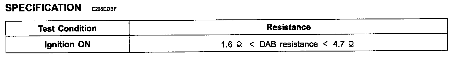 CAUTION: Never measure resistance of DAB directly, Current of measuring device may cause unexpected air bag deploy.