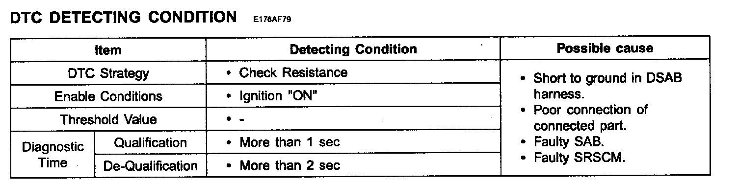 The SRSCM sets DTC B1381 (B1385) if there is a short to power in SAB harness.