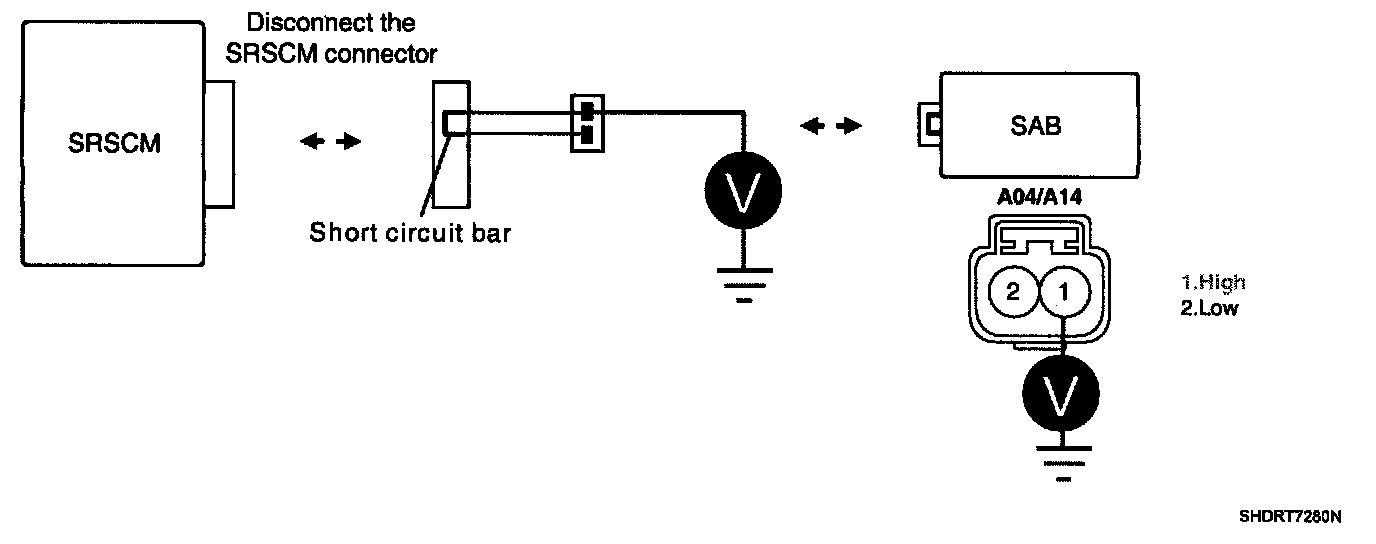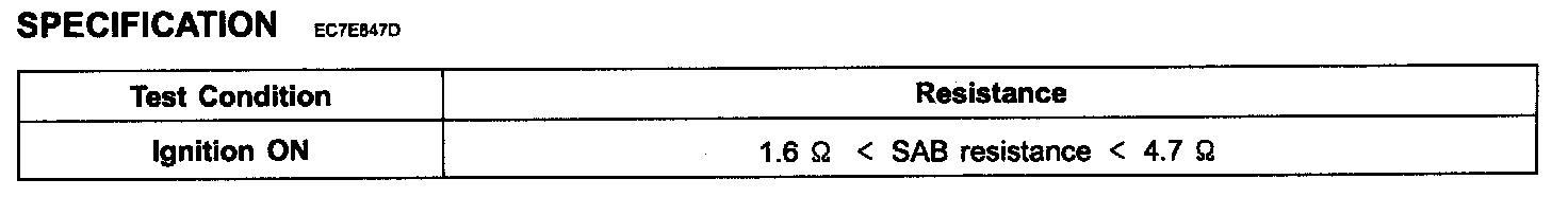 CAUTION: Never measure resistance of SAB directly, Current of measuring device may cause unexpected air bag deploy.