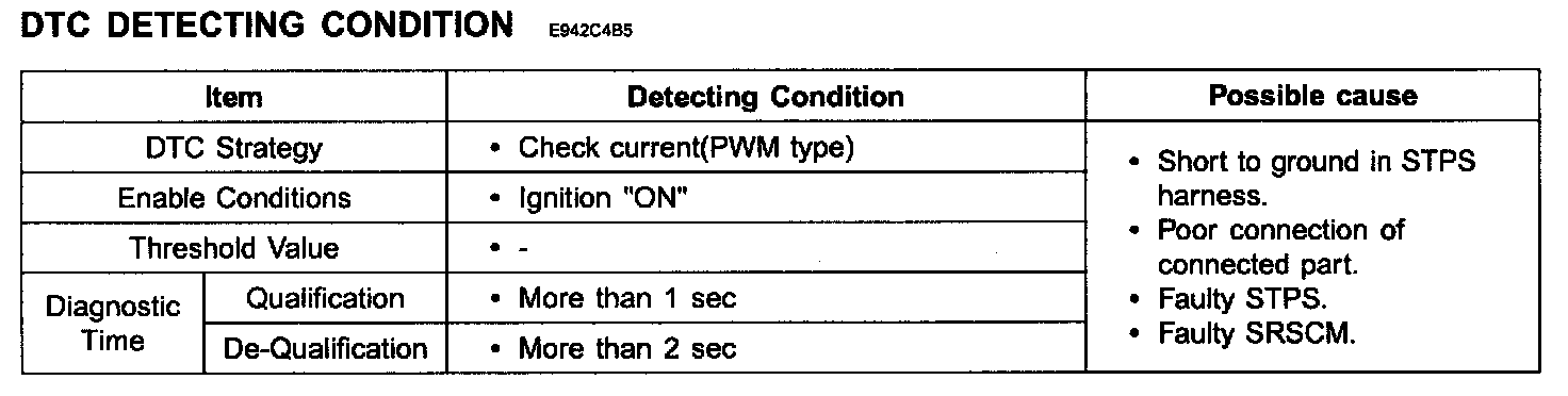 The SRSCM sets DTC B1388 if there is a short to power in Driver STPS harness.