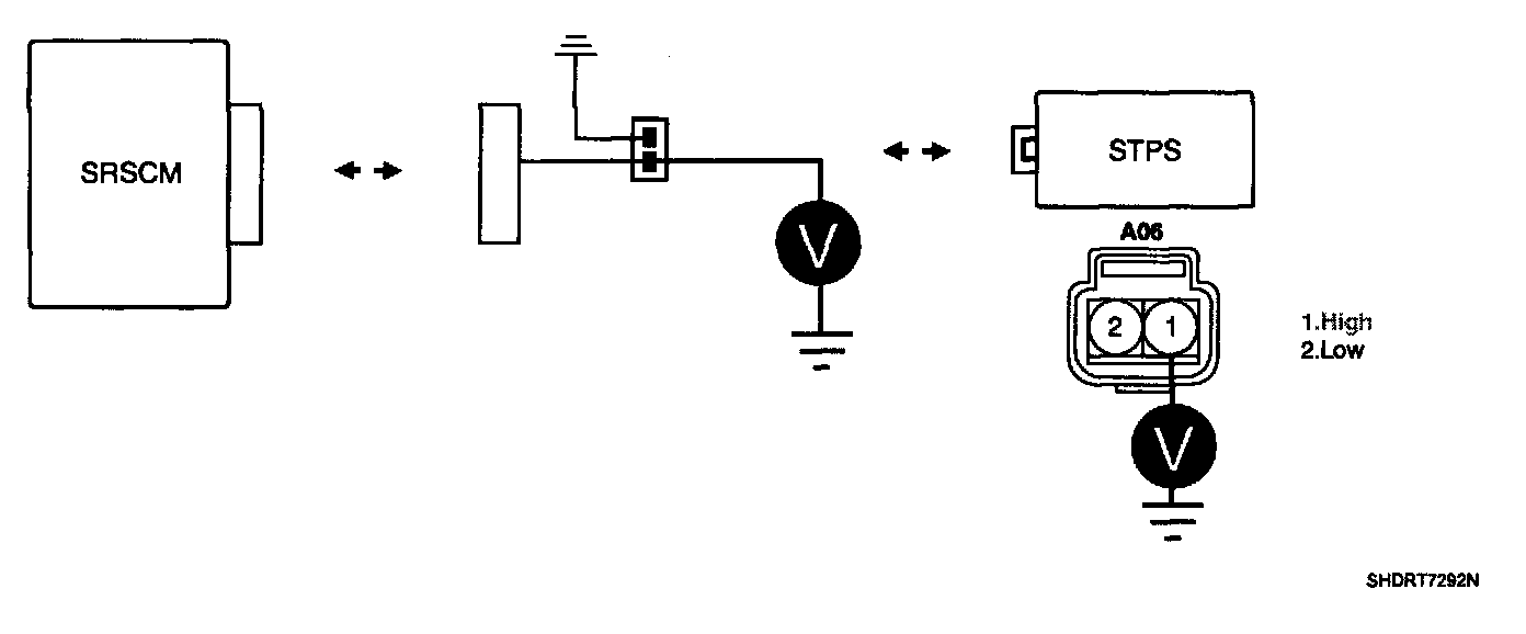 5. Measure voltage between terminal "1" of the STPS harness connector and chassis ground.