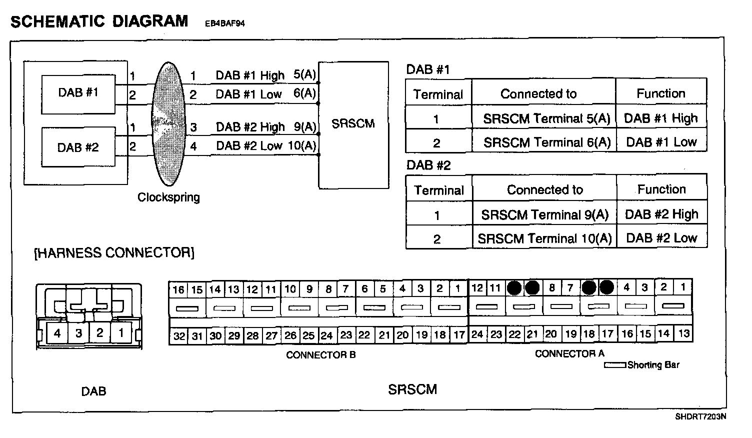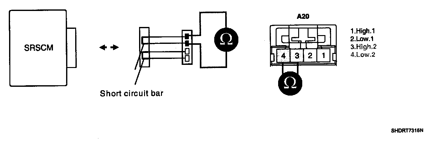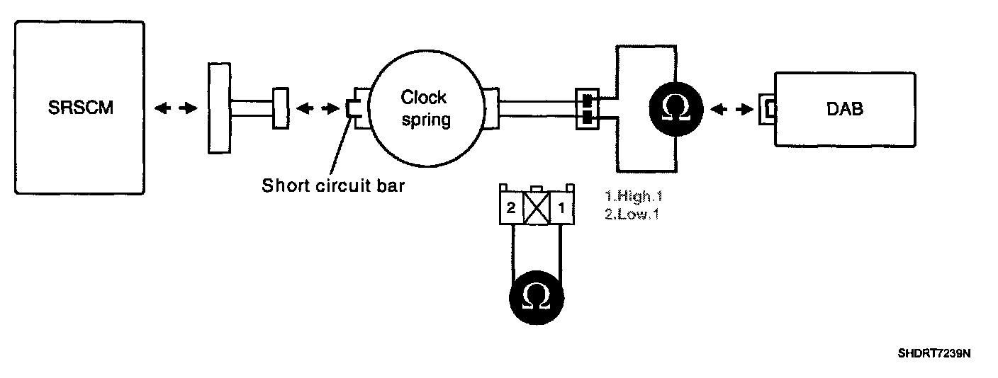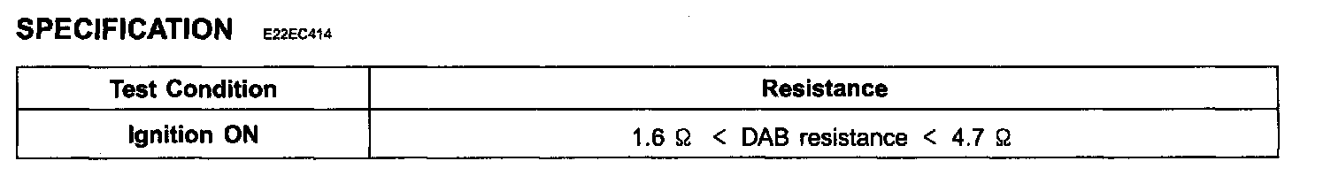 CAUTION: Never measure resistance of DAB directly, Current of measuring device may cause unexpected air bag deploy.