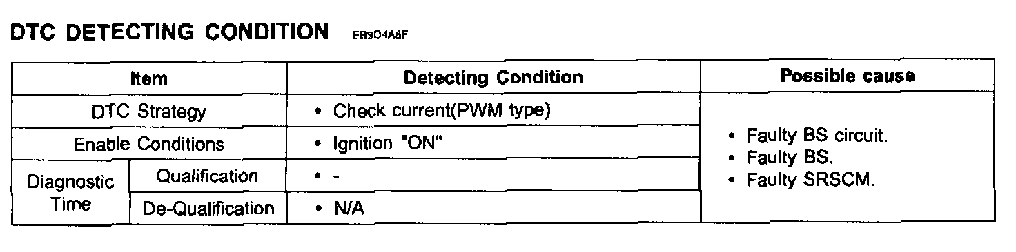 - Displaying nothing (no DTC) or DTC with label "H" (historical) shows that Fault is intermittent caused by poor contact in the part's and/or SRSCM connector or was repaired and SRSCM memory was not cleared.