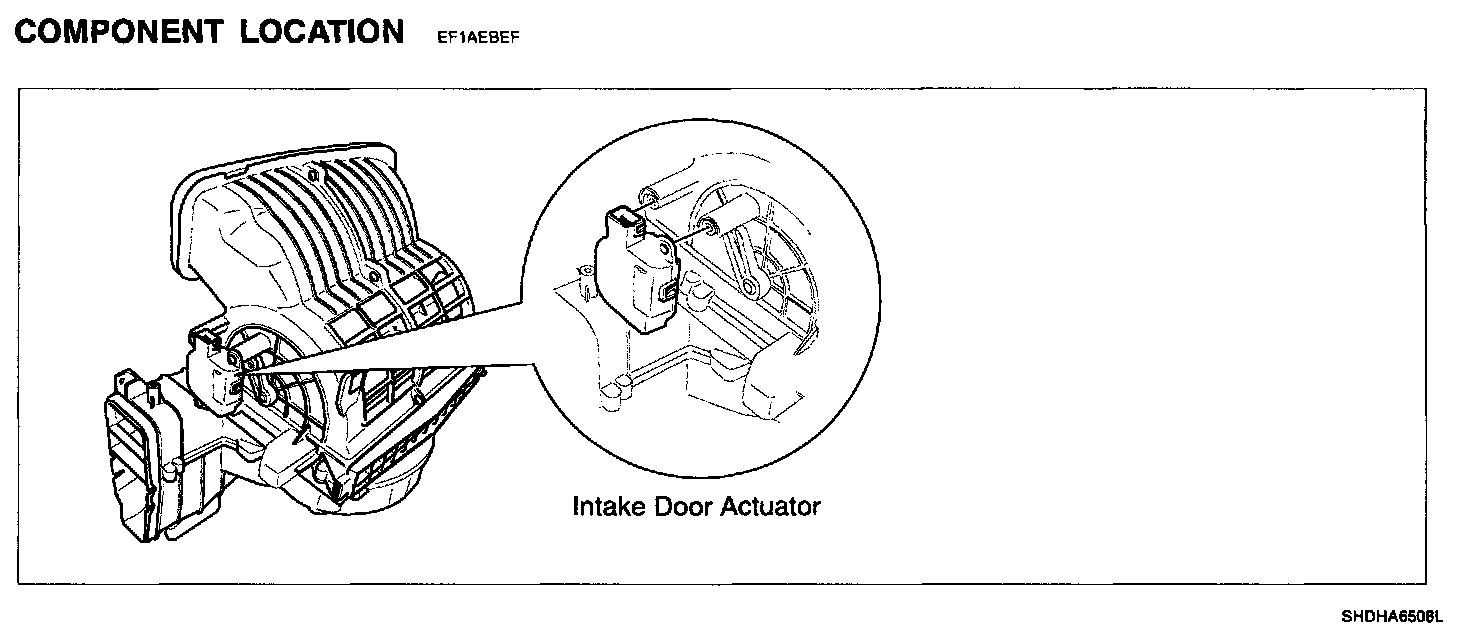 Intake door located at heater unit controls the inlet of car. When driver operates the intake switch, A/C controller recirculationeives mode signal from intake switch and operates intake door actuator to turn intake door to intended position. (with fresh mode signal, intake door is closed and with fresh mode signal, intake door is opened.