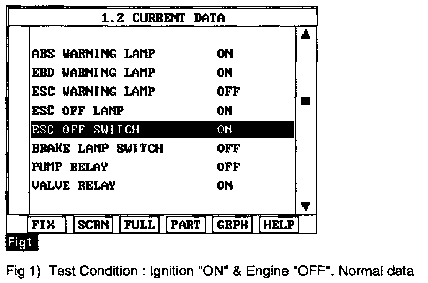 >Fault is intermittent caused by poor connection in ESC switch line or was repaired and HECU memory was not cleared. Go to "Verification Of Vehicle Repair" procedure.