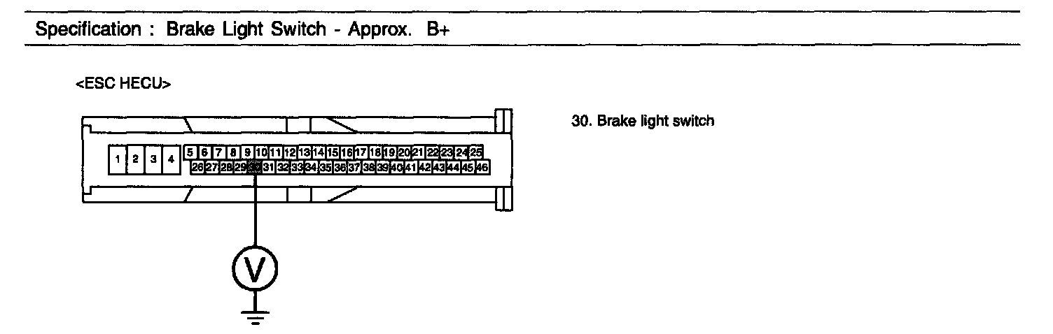 3. Measure voltage between the terminal "30" of the HECU harness connector and chassis ground.