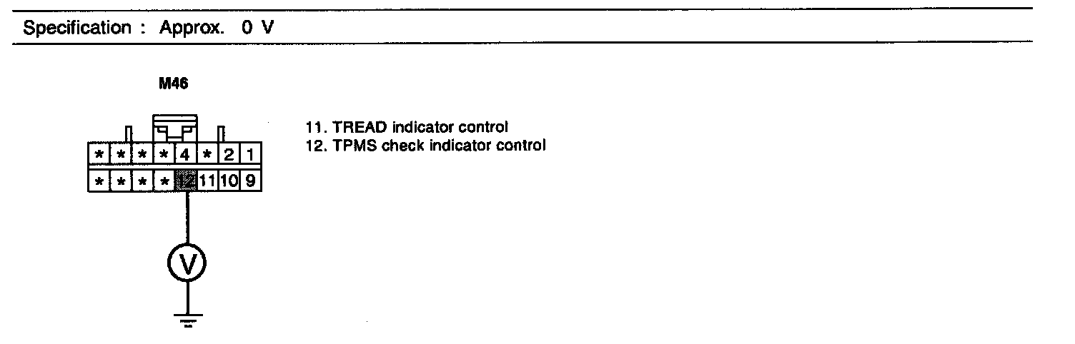 4. Measure voltage between terminal "12" of TPMS receiver harness connector and chassis ground.