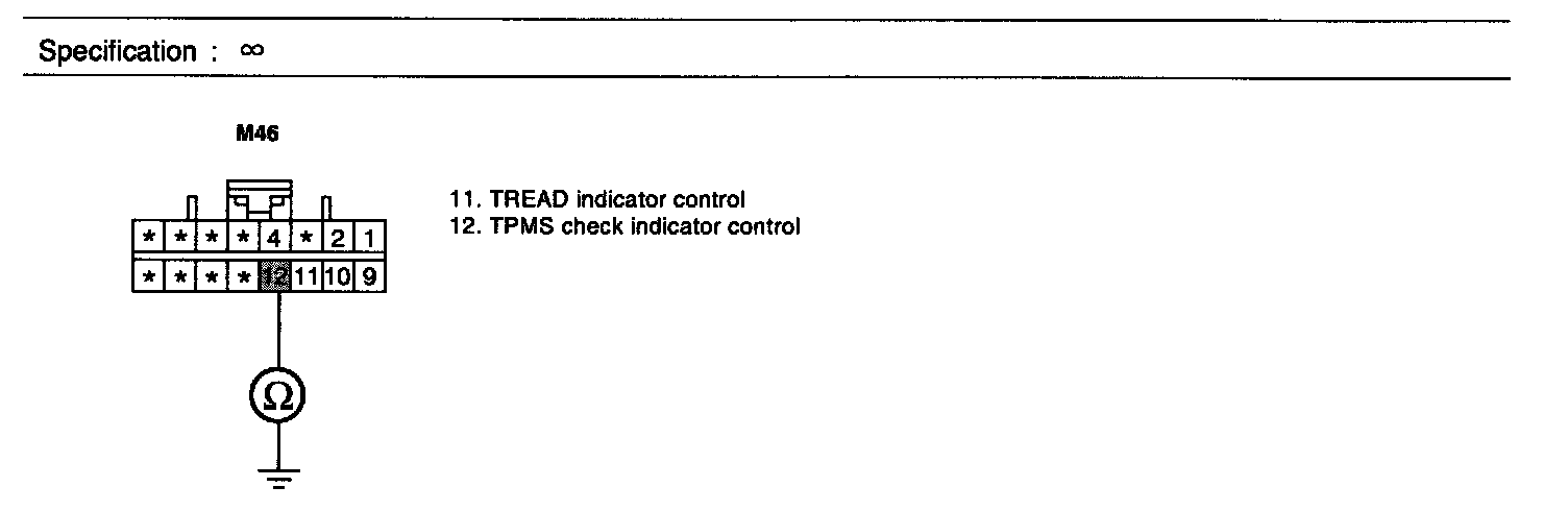 3. Measure resistance between terminal "12" of TPMS receiver harness connector and chassis ground.