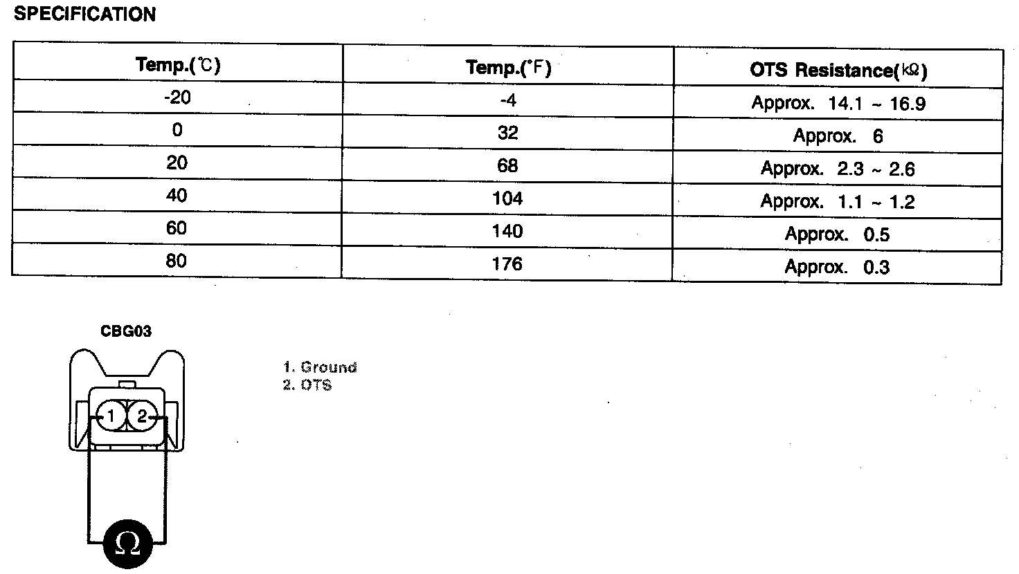 3. Measure resistance between terminals 1 and 2 of OTS connector. (Component side)