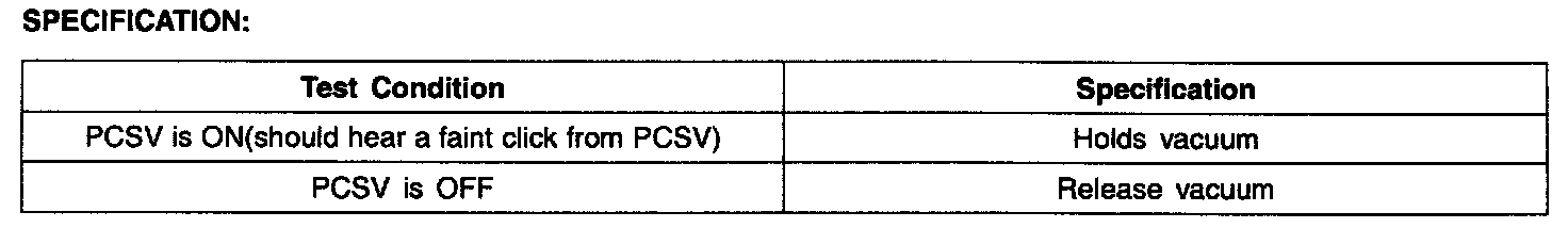 - If OK, thoroughly check fuel vapor hoses and hose clamps between PCSV and intake manifold. Repair as necessary. If OK, test with a new PCSV and check for proper operation. If problem is corrected, replace PCSV and go to "Verification of Vehicle Repair" procedure.