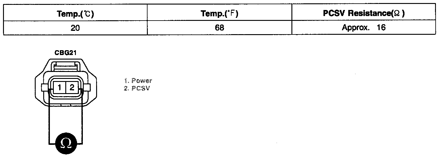 1. Measure voltage between terminal 2 of the PCSV harness connector and chassis ground
