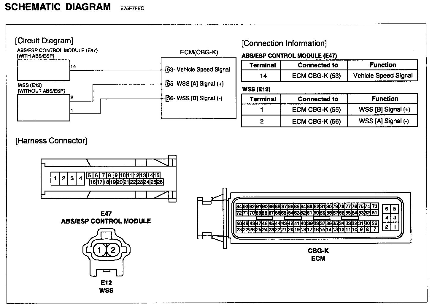 The Wheel Speed Sensor (WSS) generates a waveform with a frequency proportional to the speed of the vehicle. The signal generated by the WSS informs the ECM not only if the vehicle speed is low or high but also if the vehicle is or is not moving. The ECM uses this signal to control the fuel injection, ignition timing, transaxle shift scheduling and torque converter clutch scheduling. The WSS signal is also used to detect rough road conditions.