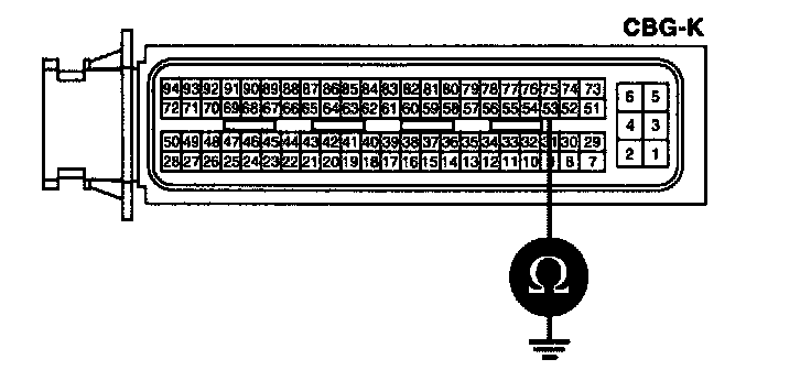 3. Measure resistance between terminal 53 of the ECM harness connector and chassis ground
