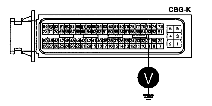 2. Measure voltage between terminal 53 of the ECM harness connector and chassis ground