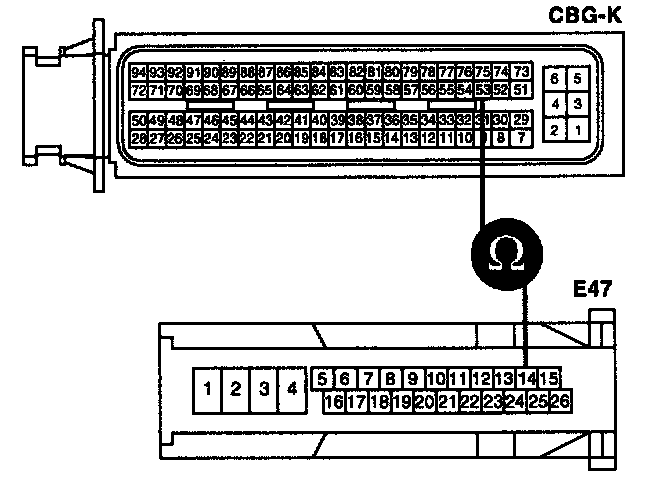 2. Measure resistance between terminals 53 of the ECM harness connector and 14 of the ASS Control Module harness connector