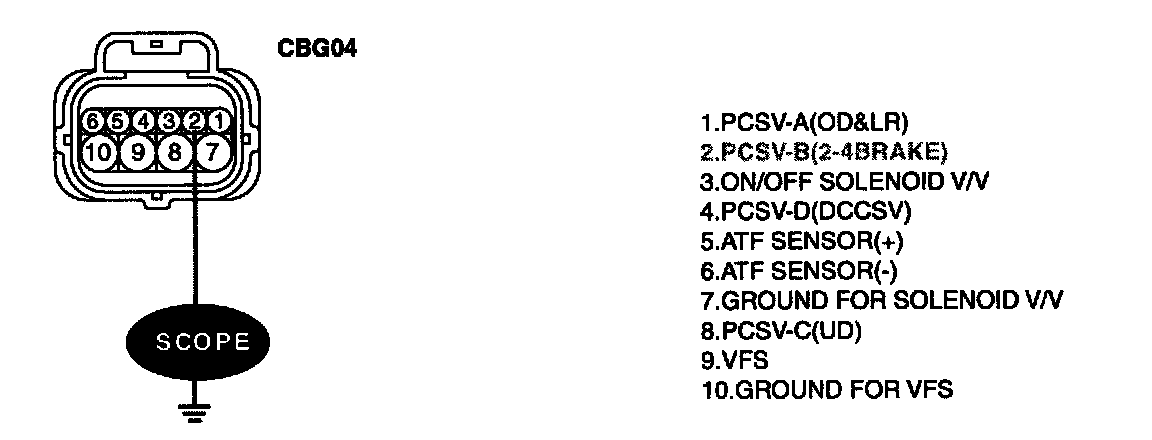 1. Connect "A/T SOLENOID VALVE" connector and install device for measuring wave form.