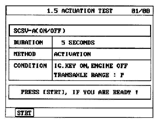 3) Select A/T solenoid valve actuator test and operate actuator test.