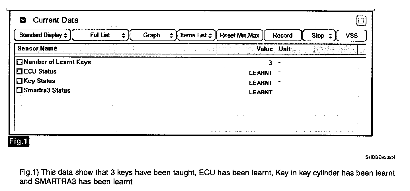 2. Monitor the "ECU, KEY and Smartra STATUS" Parameter on the Scantool.