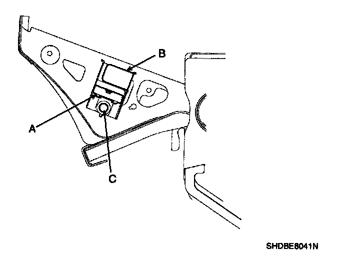 3. Disconnect the 5P connector of the SMARTRA unit and then remove the SMARTRA unit (A) and bracket (B) after loosening a shear bolt (C).