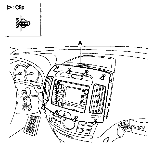 4. Remove the audio unit after disconnecting the audio connectors and cable (A).