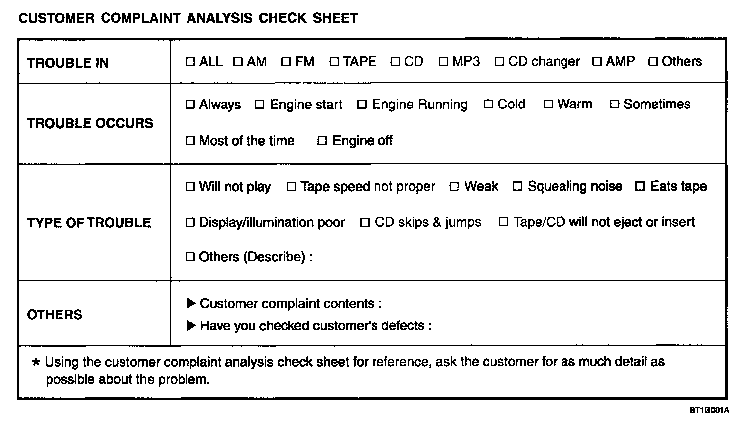 Customer Complaint Analysis Check Sheet: