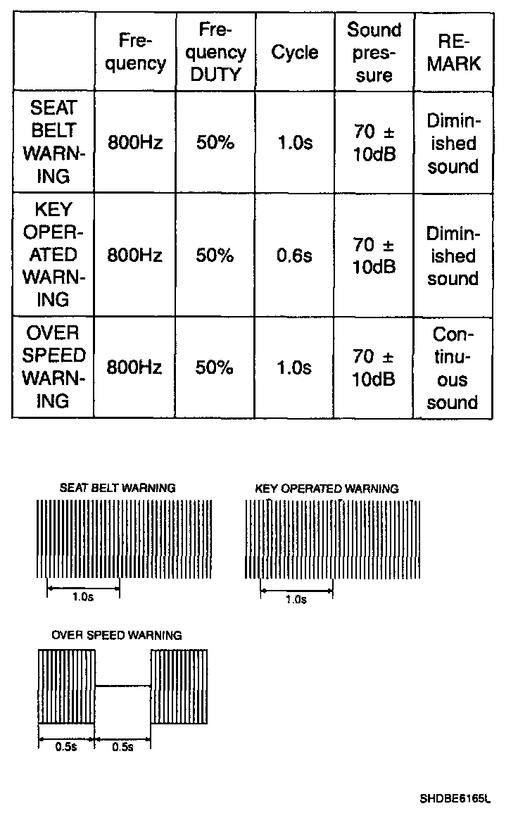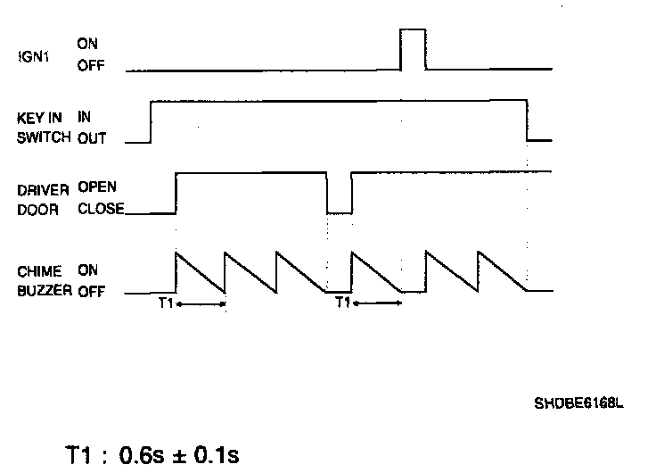 1. Buzzer sounds every 0.6 sec when DRIVER DOOR is opened under KEY IN SW is IN.