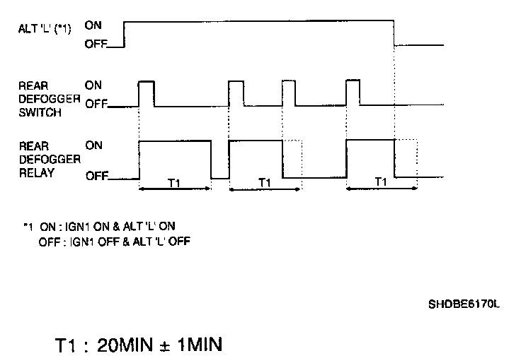 2. Defogger relay is turned OFF if defogger SW is turned ON again under output ON or ALT "L" OFF.