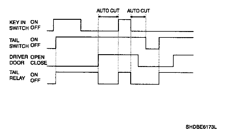 3. TAIL RELAY is turned OFF if the state is changed from KEY IN SW ON and TAIL SW ON to KEY IN SW OFF, TAIL SW ON and Dr DOOR OPEN. (Automatic light out)