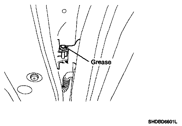 4. Grease the pivot portions of the hinges indicated by the arrows.