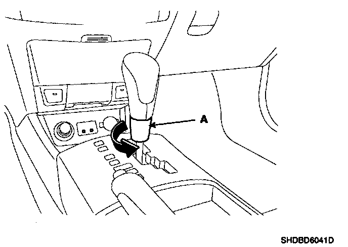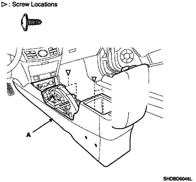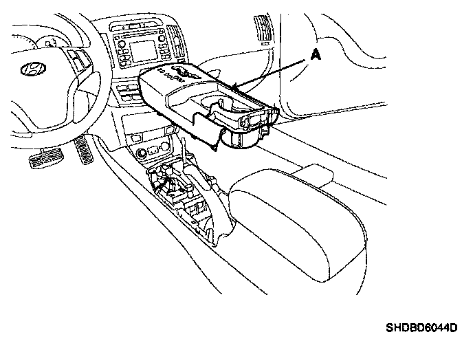 5. After loosening the console mounting screws, remove the floor console assembly (A).