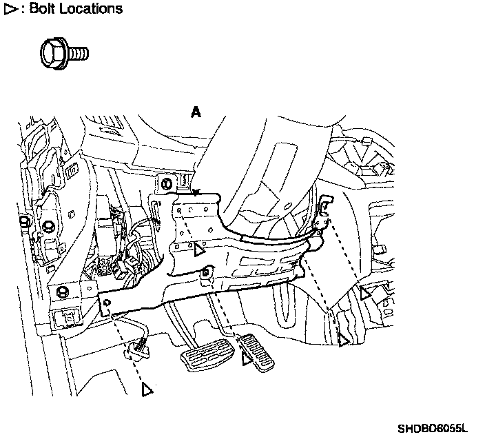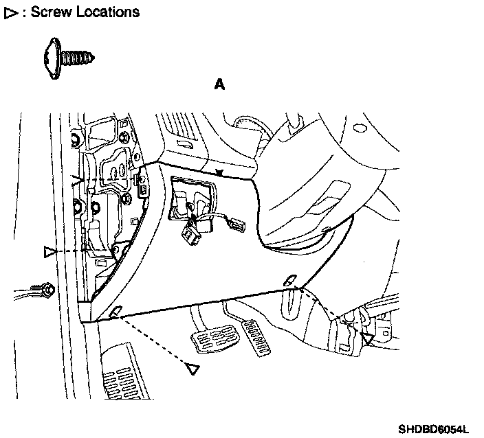 3. After loosening the crash pad lower panel mounting screw, then remove the lower panel (A).