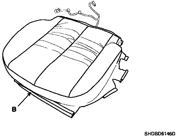 5. After removing the hogring clip on the front of seat cushion and remove the seat cushion cover (B).