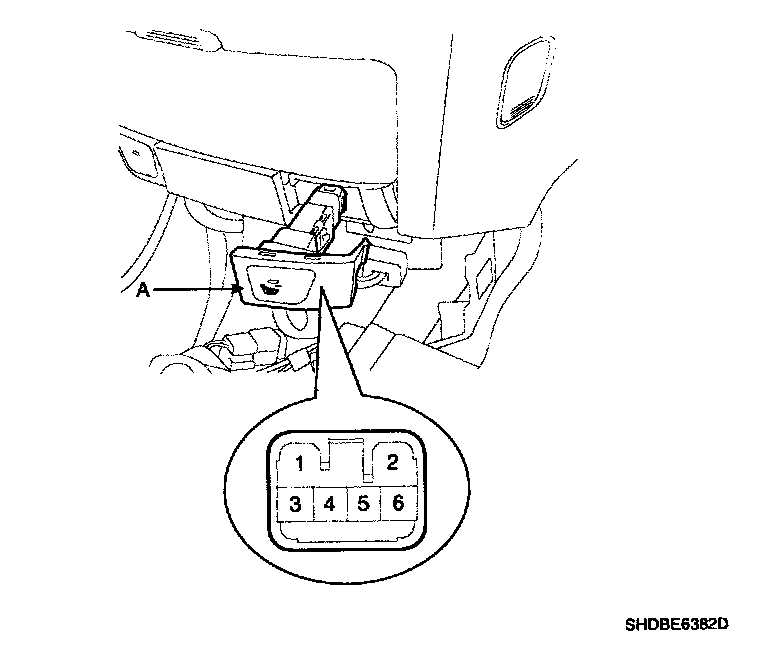 2. Remove the seat warmer switch (A) with a trim removal tool and disconnect the seat warmer connector.