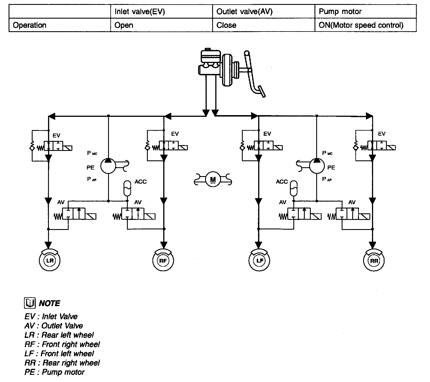NORMAL BRAKING without ABS: