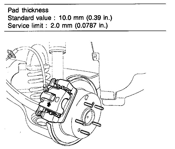 ^ If the pad thickness is out of specification, left and right pads must be replaced as a complete set.