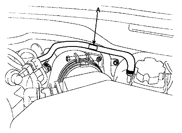 1. Disconnect the brake booster vacuum hose (check valve built in) (A) at the booster.