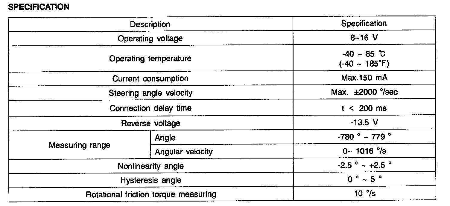 Steering Angle Sensor: Specifications