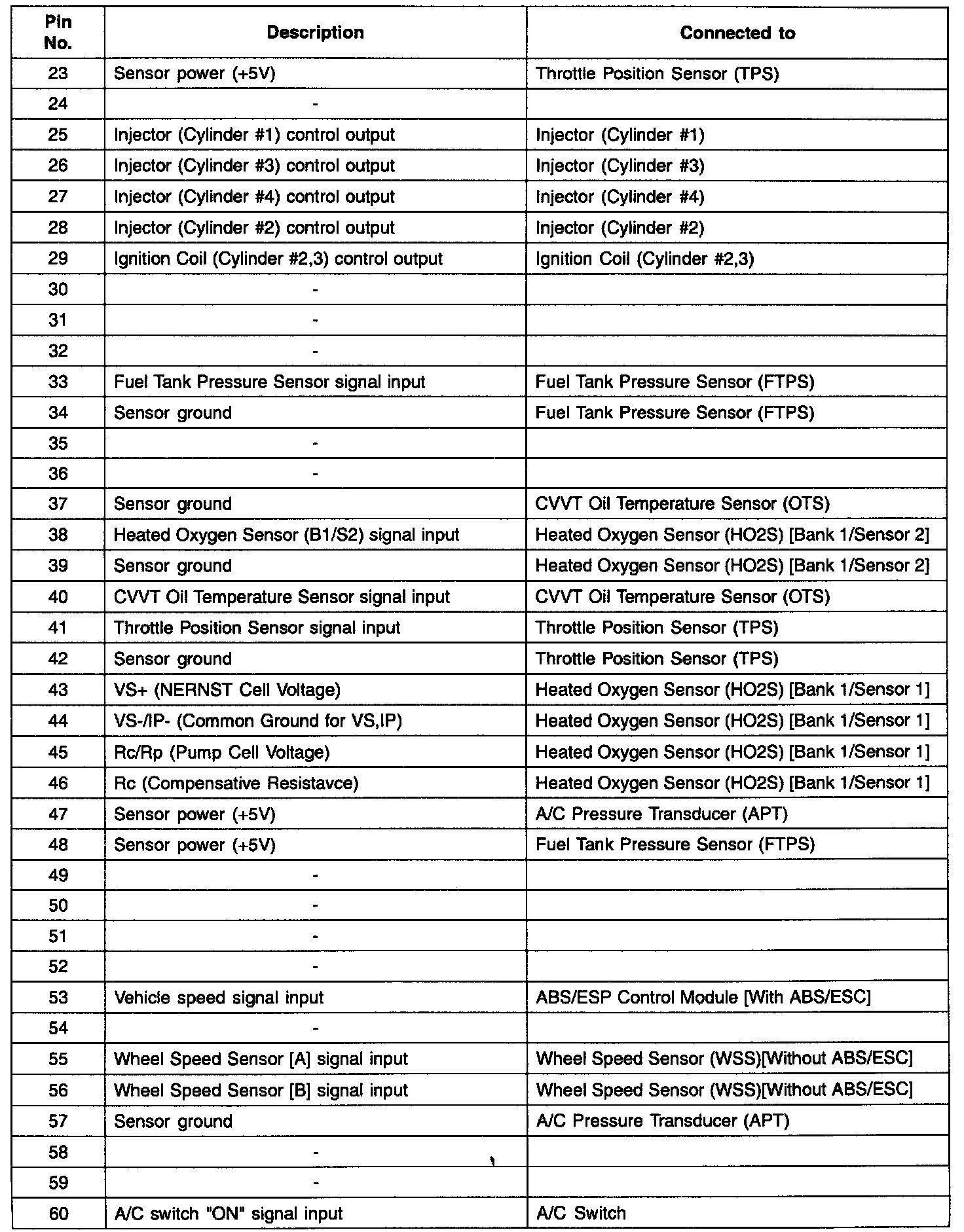 ECM TERMINAL FUNCTIONEngine Control Module (ECM) Terminal Function - Connector [CBG-K] (Part 1):