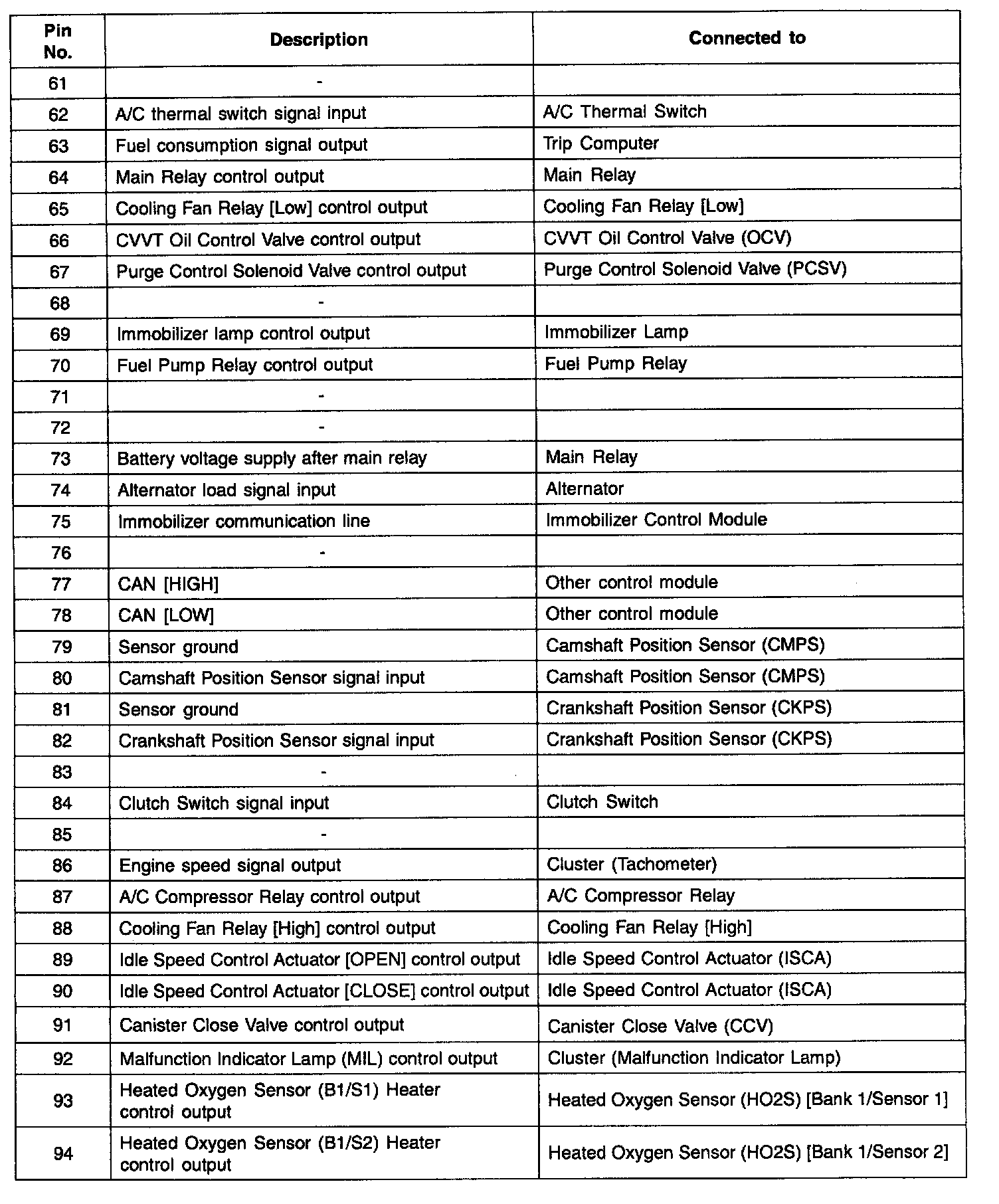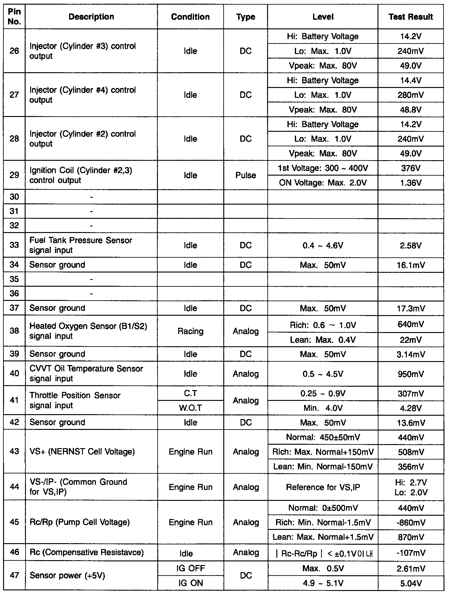 Engine Control Module (ECM) Terminal Input/Output Signal - Connector [CBG-K] (Part 4):