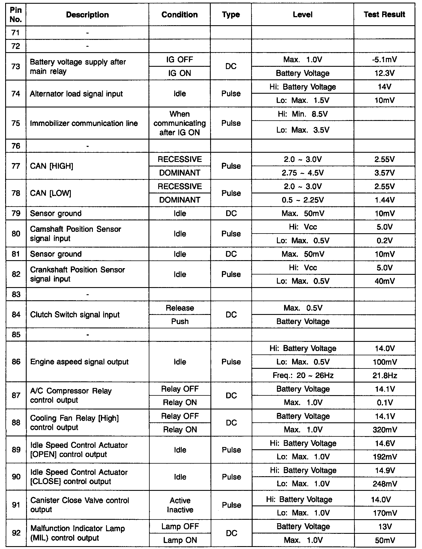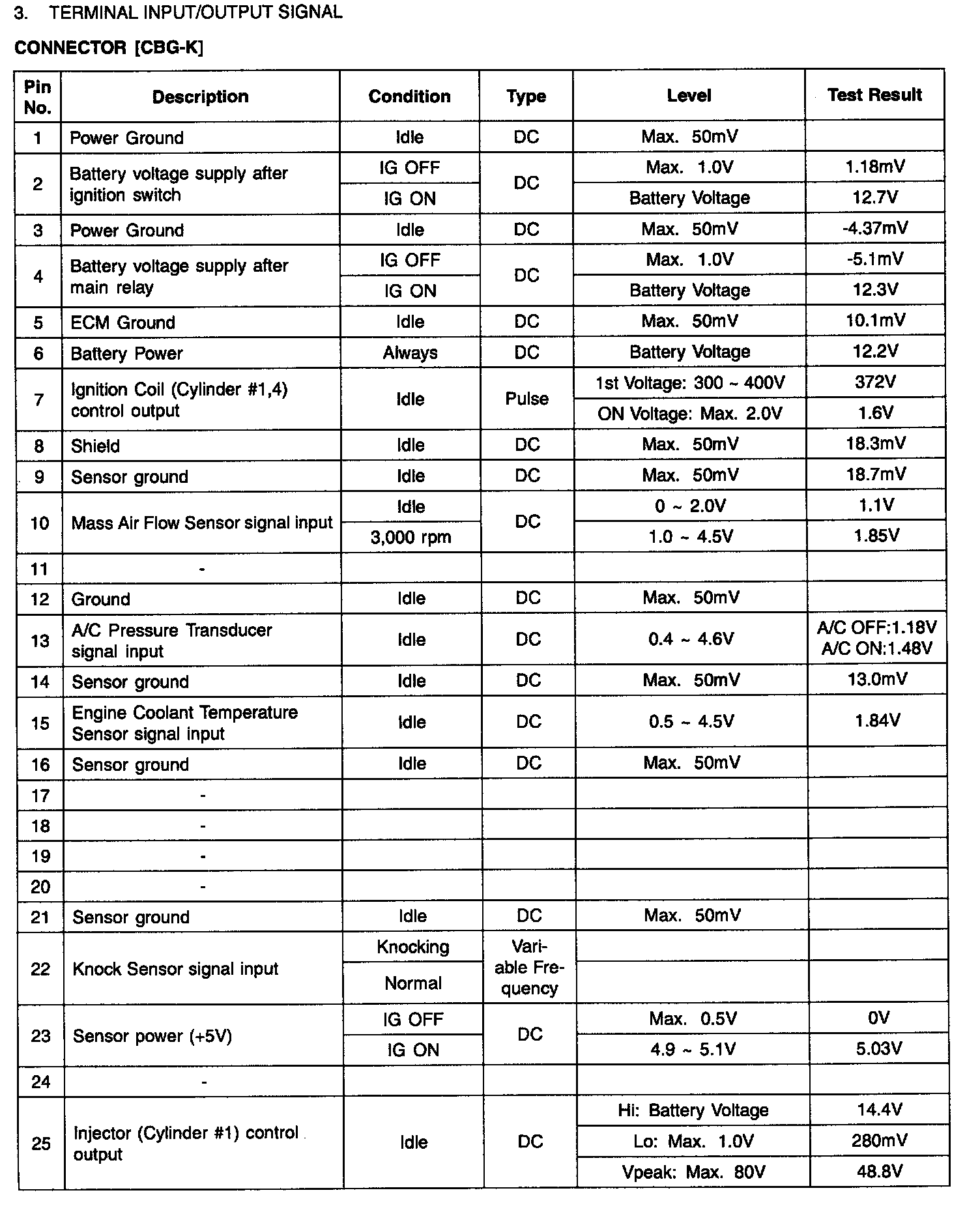 ECM TERMINAL INPUT/OUTPUT SIGNALEngine Control Module (ECM) Terminal Input/Output Signal - Connector [CBG-K] (Part 1):