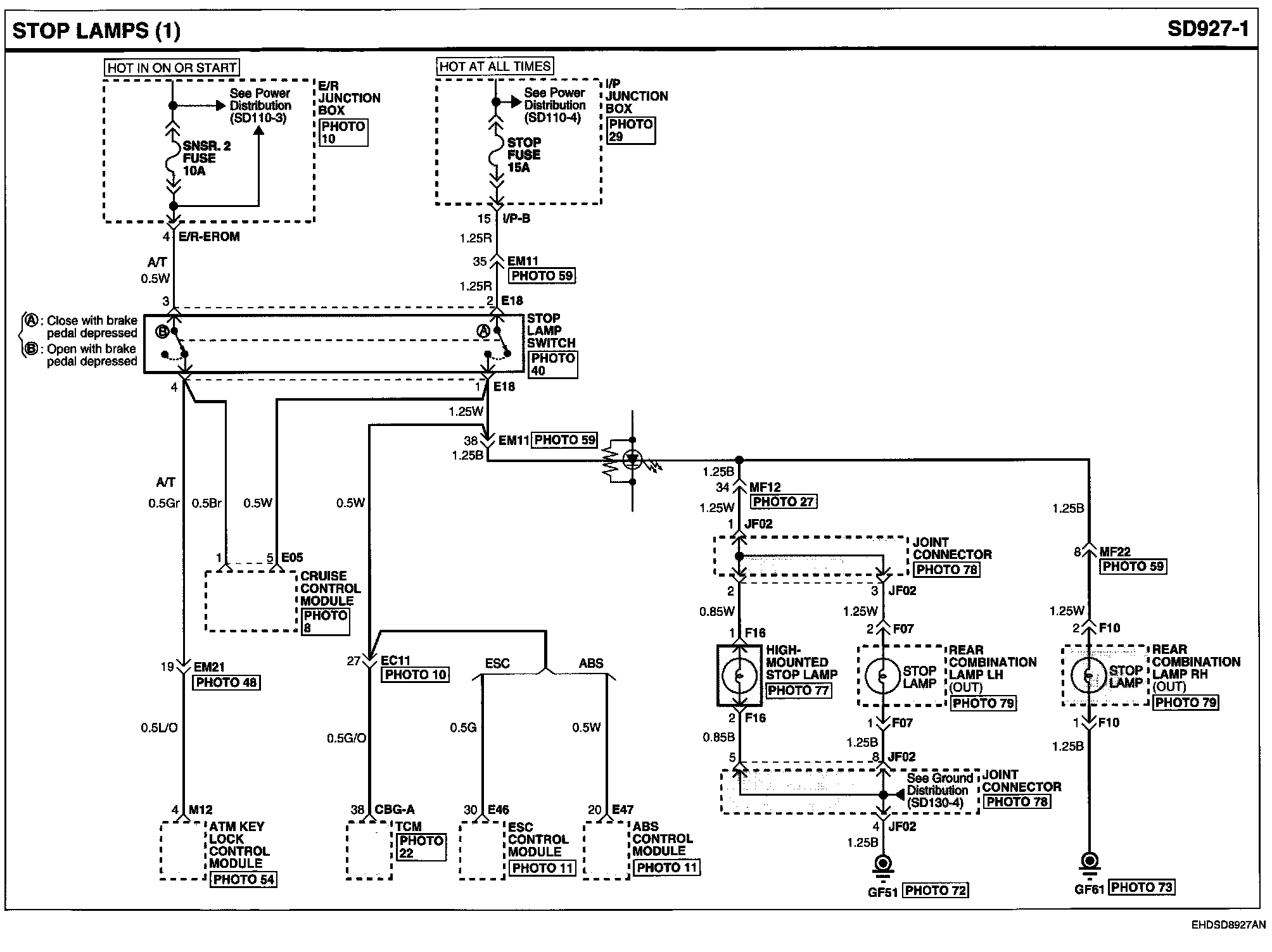 Locations: Location photographs (references to PHOTOS) referred to within these diagrams can be found via the photo number at the vehicle level under Locations by Photo Number. Component Locations
