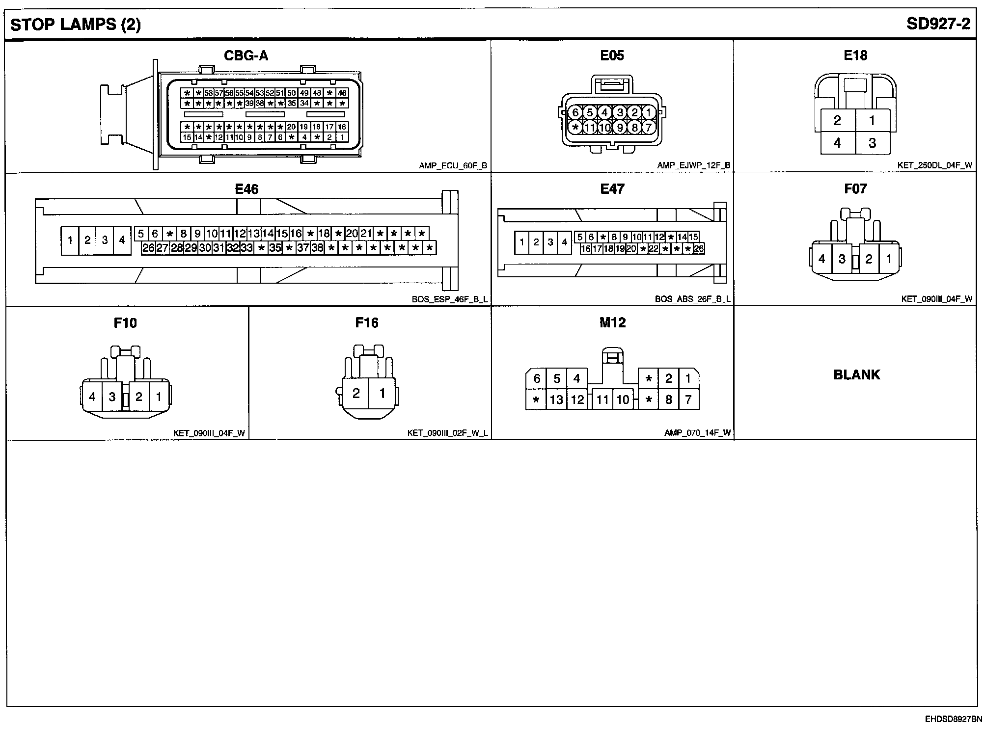 Stop Lamps Connector Pin Outs: