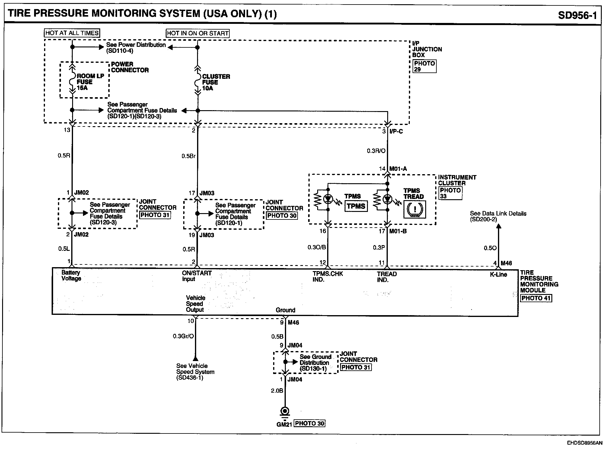 Tire Pressure Monitoring System (USA Only) Connector Pin Outs: