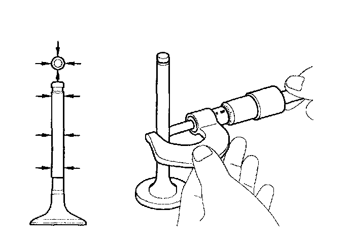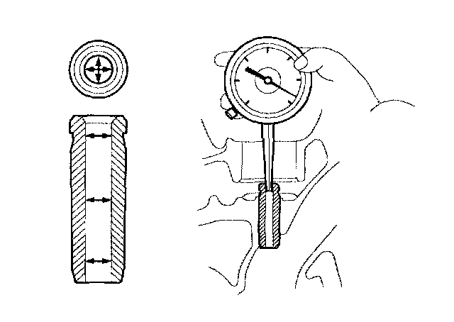 1) Using a caliper gauge, measure the inside diameter or the valve guide.