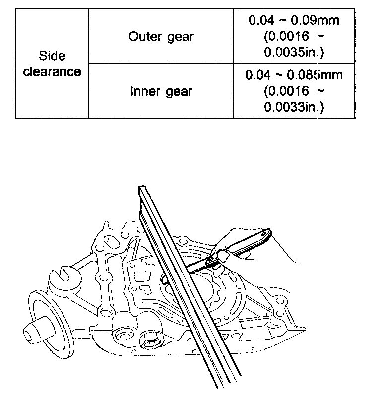 Using a feeler gauge, measure the clearance between the outer rotor and body.