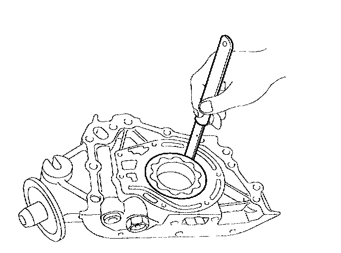 Place a new front case gasket on the cylinder block. Apply engine oil to the lip of the oil pump seal. Then, install the oil pump onto the crankshaft. When the pump is in place, clean any excess grease off the crankshaft and check that the oil seal lip is not distorted.