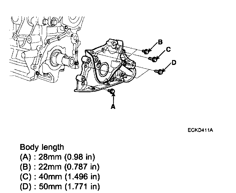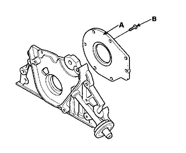 2) Install the oil pump cover (A) to front case with the 7 screws (B).