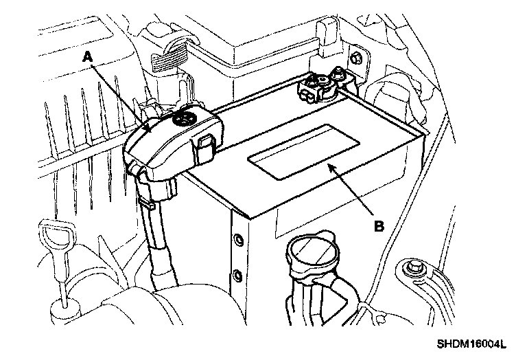 1. Disconnect the terminal (A) from the battery (B).