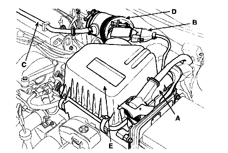 4) Remove the intake air hose and air cleaner (E).