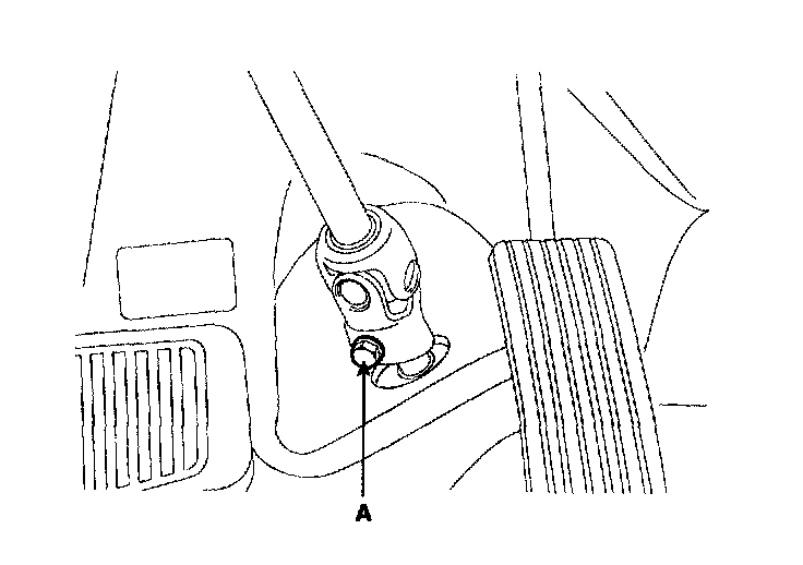 24. Remove the steering u-joint mounting bolt (A).